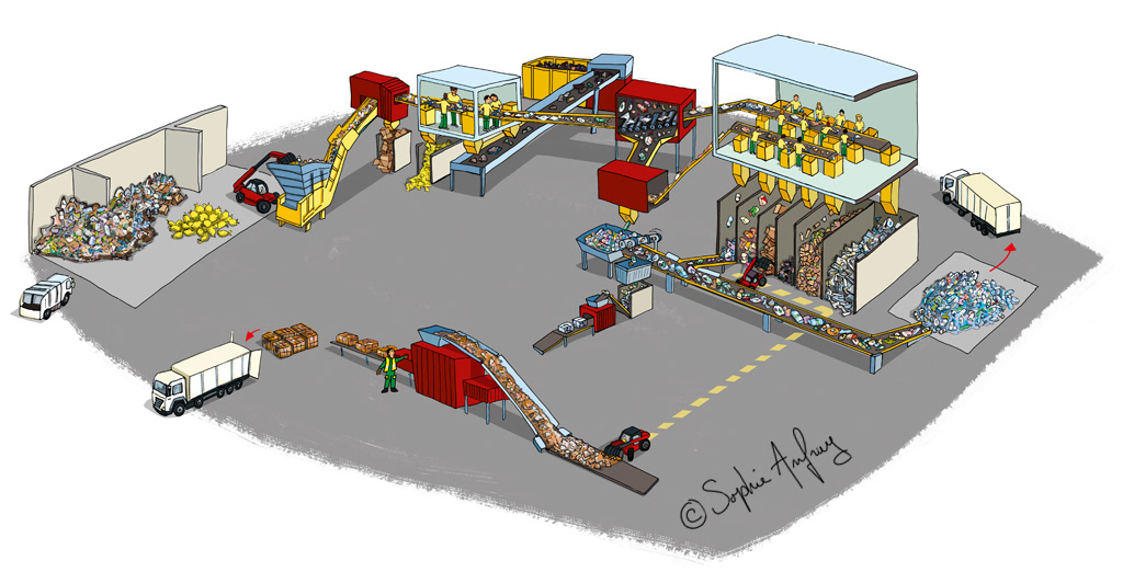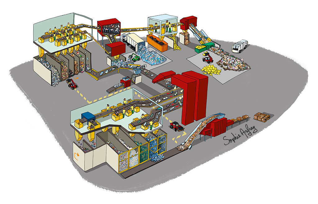 schéma de fonctionnement de centres de tri pour des panneaux et documents de communication print et web. Client : Trifyl