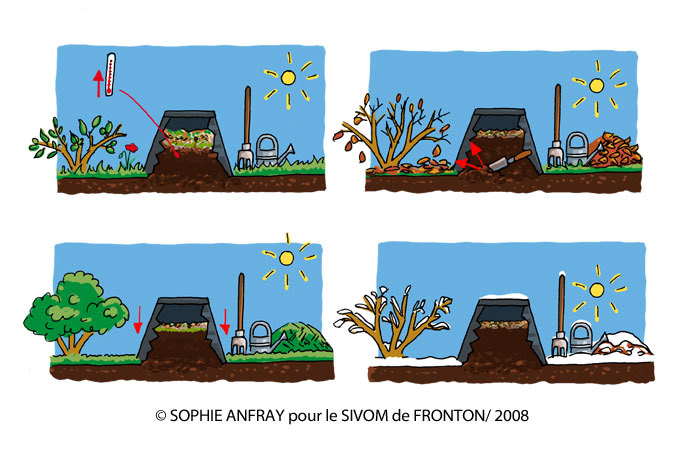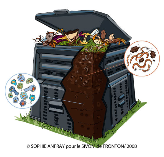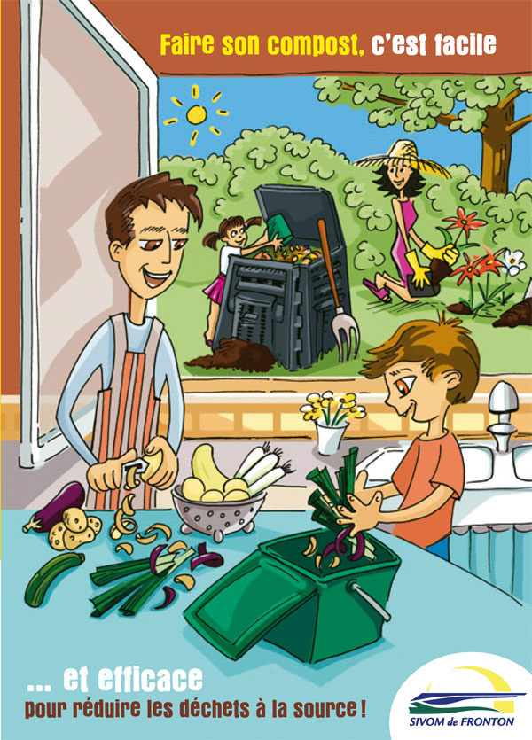 Illustrations pour un dépliant d'information sur le compostage. Client : Contour pour Sivom de Fronton