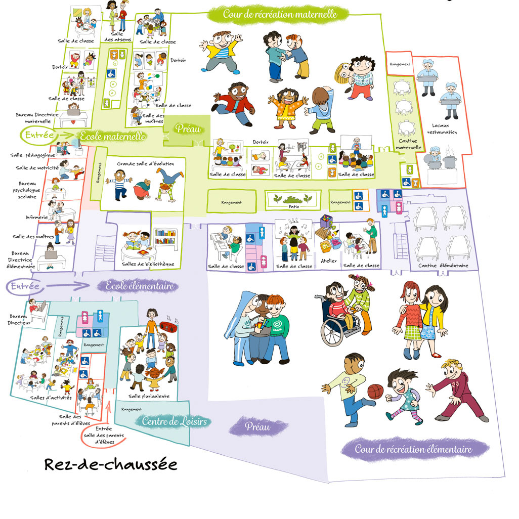 Plans illustrés pour l'école Gérard Philippe