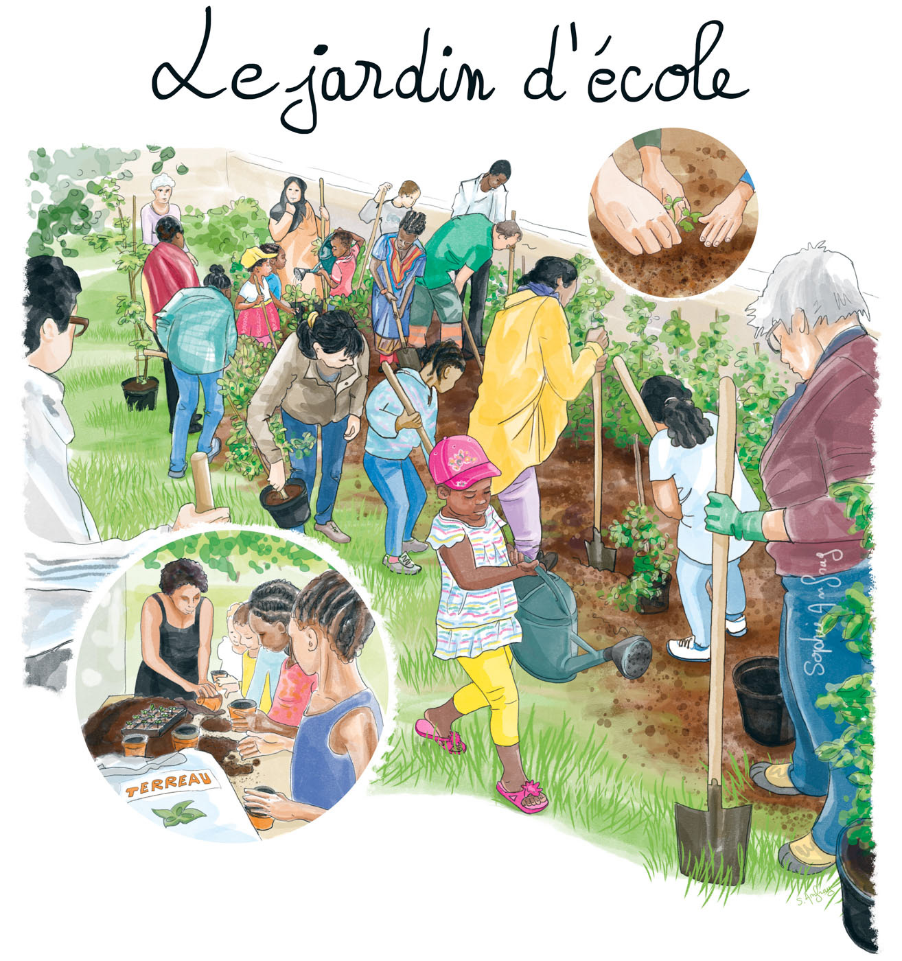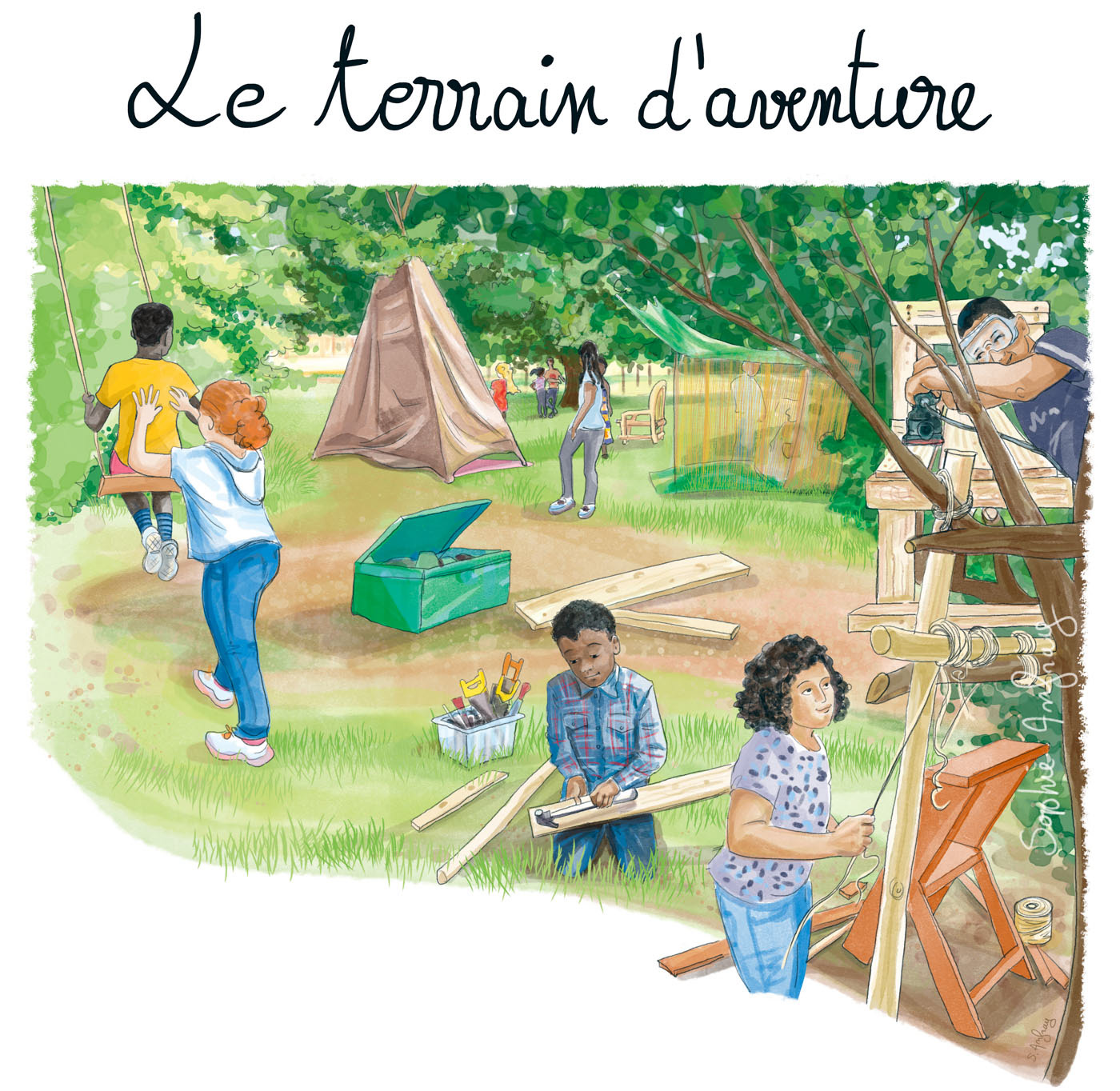 Illustration pour des panneaux de signalétique à l'entrée d'un jardin école et d'un terrain d'aventure. Client : Ville de Villiers le bel