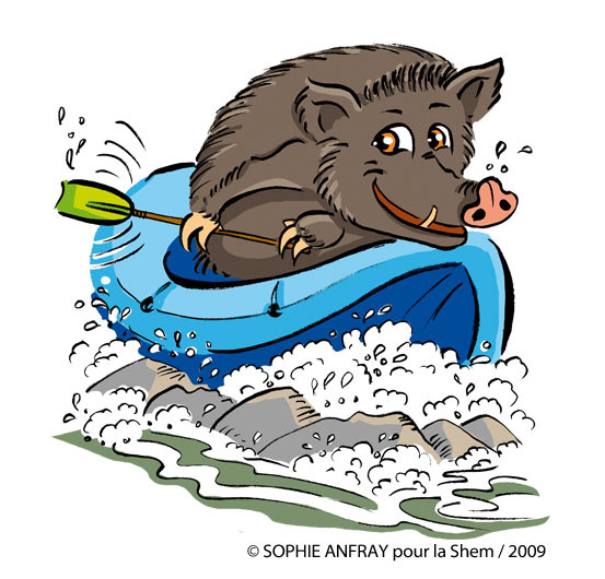 Conception d'une mascotte illustrant les risques aux abords des centrales et barrages hydroélectriques pour des dépliants d’informations et des panneaux. Client : La SHEM (Société Hydro-Electrique du Midi)