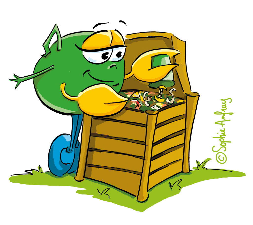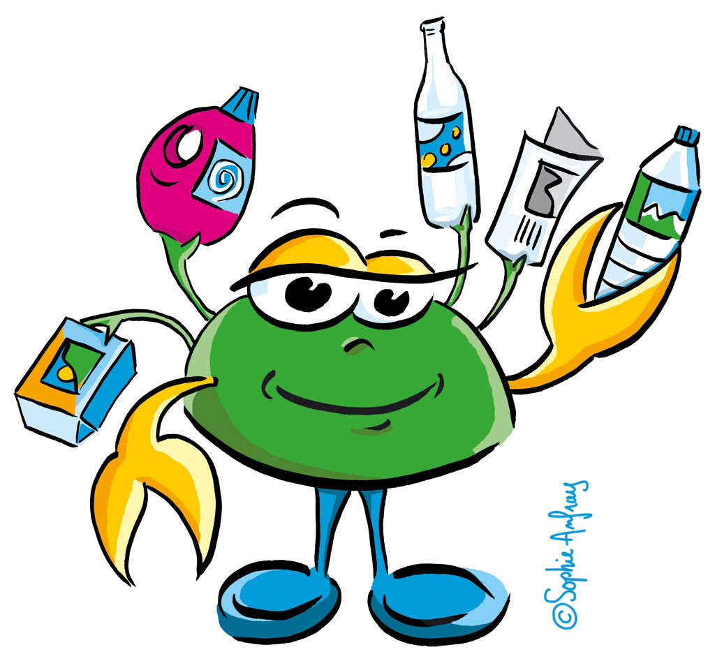 Création d'une mascotte pour la communication sur les déchets ménagers des SIVOM de Bruguières et Fronton. Client : Agence Contours